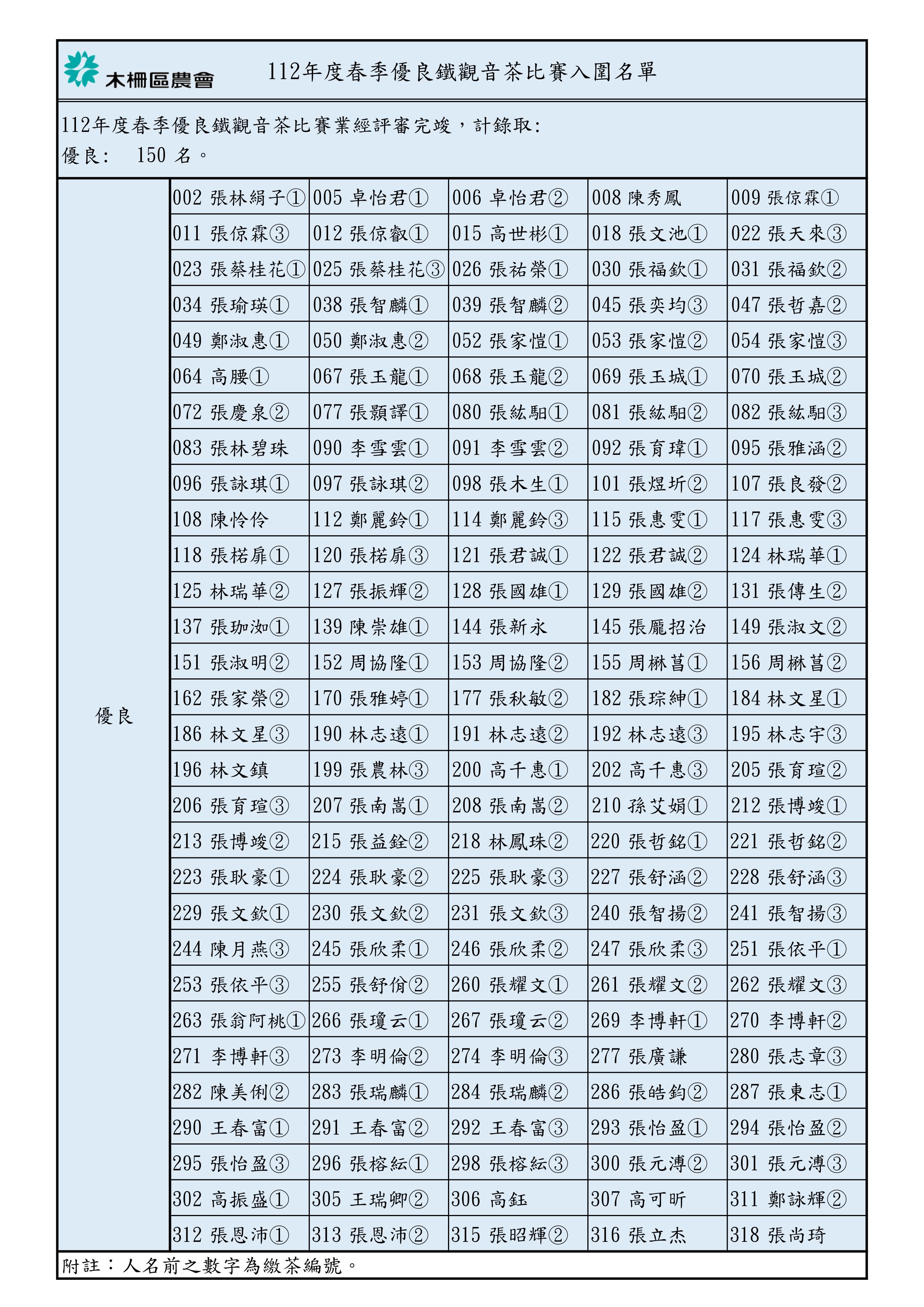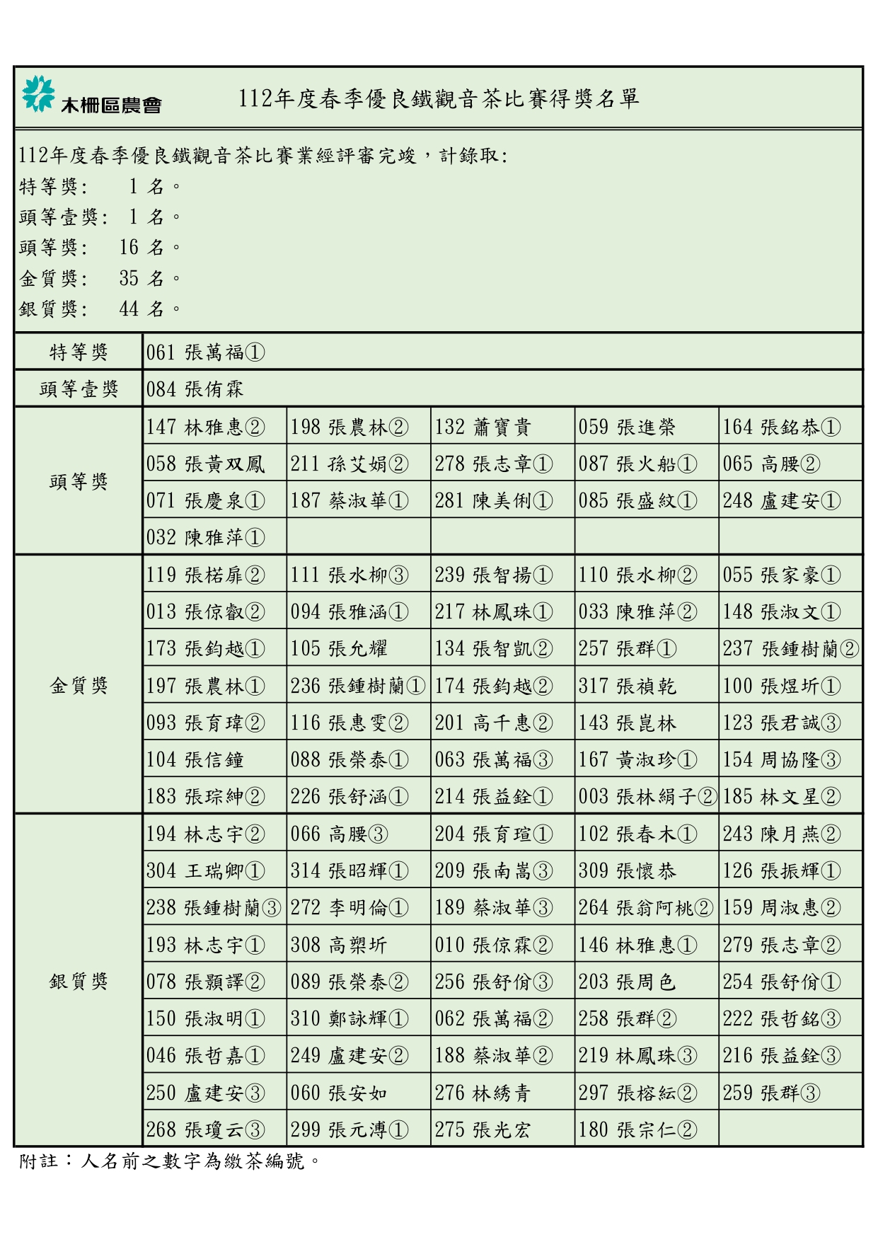062023-06 112年度春季優良鐵觀音茶比賽得獎名單 112年度春季優良鐵觀音茶比賽得獎名單如下: 回上一頁 預防登革熱流行疫情-開心種蔬果 用心防蚊蟲 本會信用部111年度四大報表(資產負債表、事業損益表、資本及公積撥補表及現金流量表)