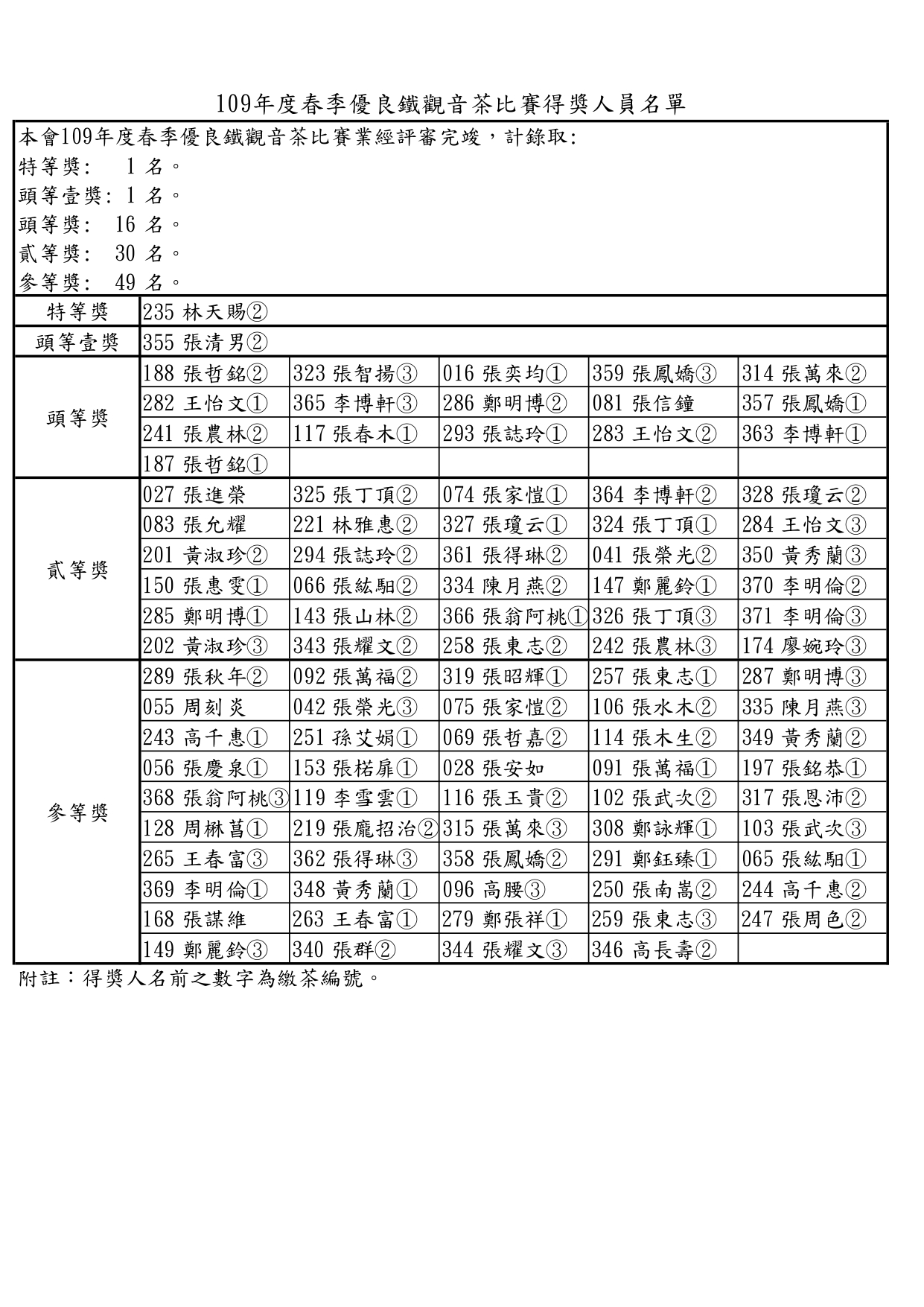 032020-06 109年度春季優良鐵觀音茶比賽得獎名單 109年度春季優良鐵觀音茶比賽得獎名單如下: 回上一頁 農會漁會信用部防制洗錢及打擊資恐注意事項範本及相關規定問答集-民眾篇 木柵區農會示範茶園開工了!
