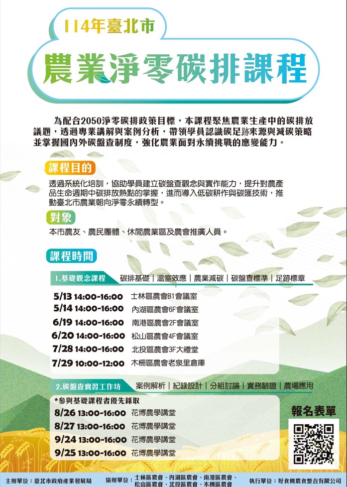 122025-05 「臺北市114年農業淨零碳排課程」 回上一頁 自114年6月1 日起,本會農漁行動達人APP無卡提款功能全面上線,歡迎多加利用。 本會信用部113年度四大報表(資產負債表、事業損益表、資本及公積撥補表及現金流量表)