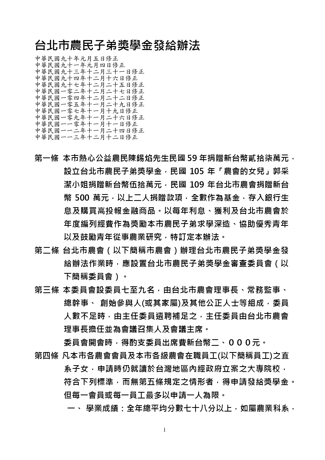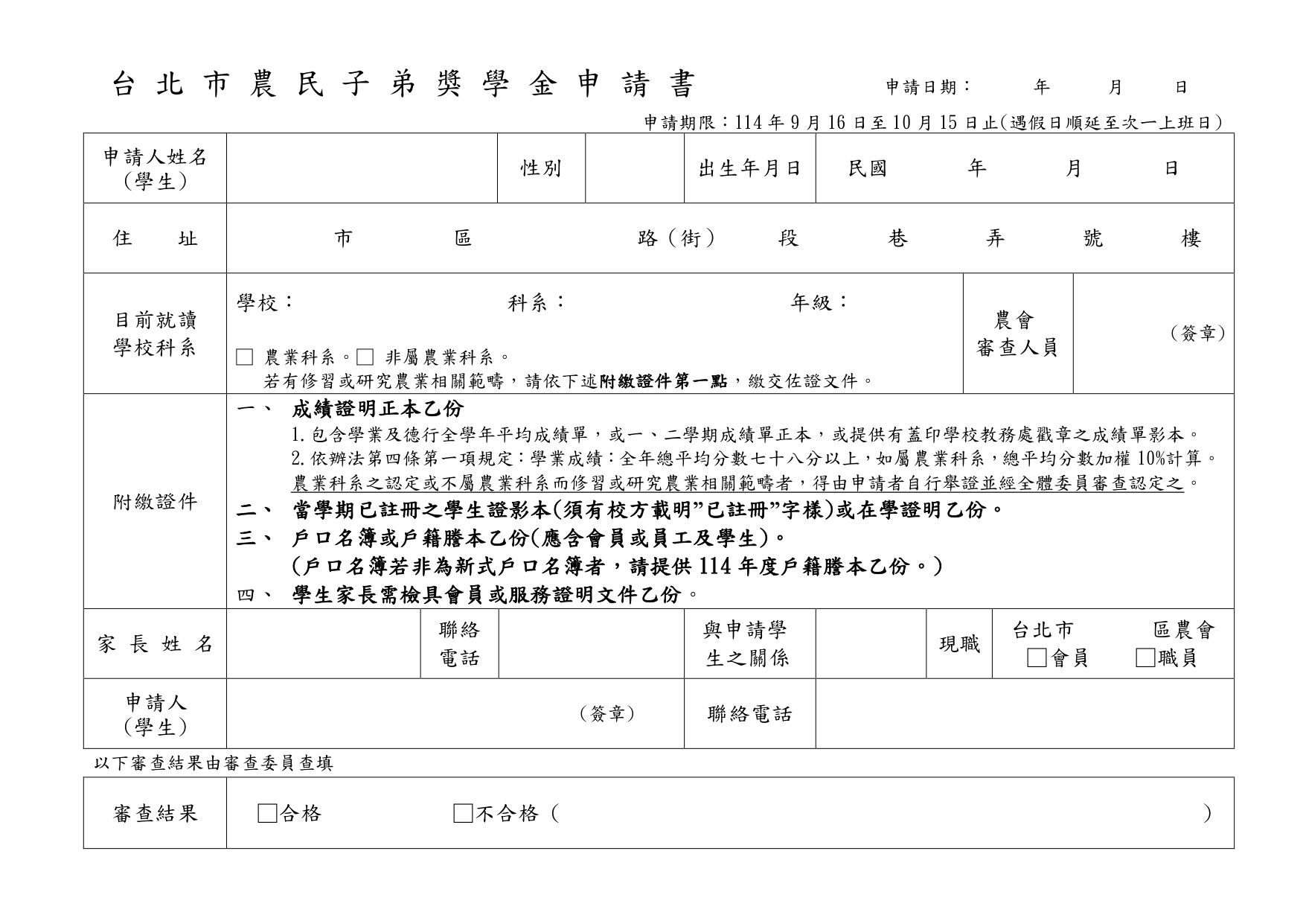 臺北市農會114年度台北市農民子弟獎學金之申請期間為本(114)年9月16日起至10月15日止